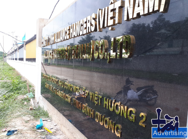 Chữ inox vàng Bình Bương lắp đặt cho công ty TNHH Alliance Hanngers thuộc khu công nghiệp Việt Hương 2, xã An Tây, thị xã Bến Cát tỉnh Bình Dương. Là sản phẩm của công ty Tài quảng cáo sản xuất và thi công chữ inox vàng bóng với nguyên liệu là inox vàng 304, loại inox tốt nhất hiện nay. Chữ inox vàng 304 bóng loáng có độ bền cao ít rỉ sét trong nhiều năm, do chữ có màu vàng nên phù hợp theo sách phong thủy. Rất được nhiều công ty cơ quan, cửa hàng xí nghiệp sử dụng cho bảng hiệu chính. Cùng đội ngũ lành nghề và máy móc hiện đại công ty Tài quảng cáo đáp ứng tốt mọi yêu cầu của quý khách về chữ inox vàng. Hân hạnh đón tiếp quý khách, liên lạc với chúng tôi qua số 0948. 447 237. Trân trọng