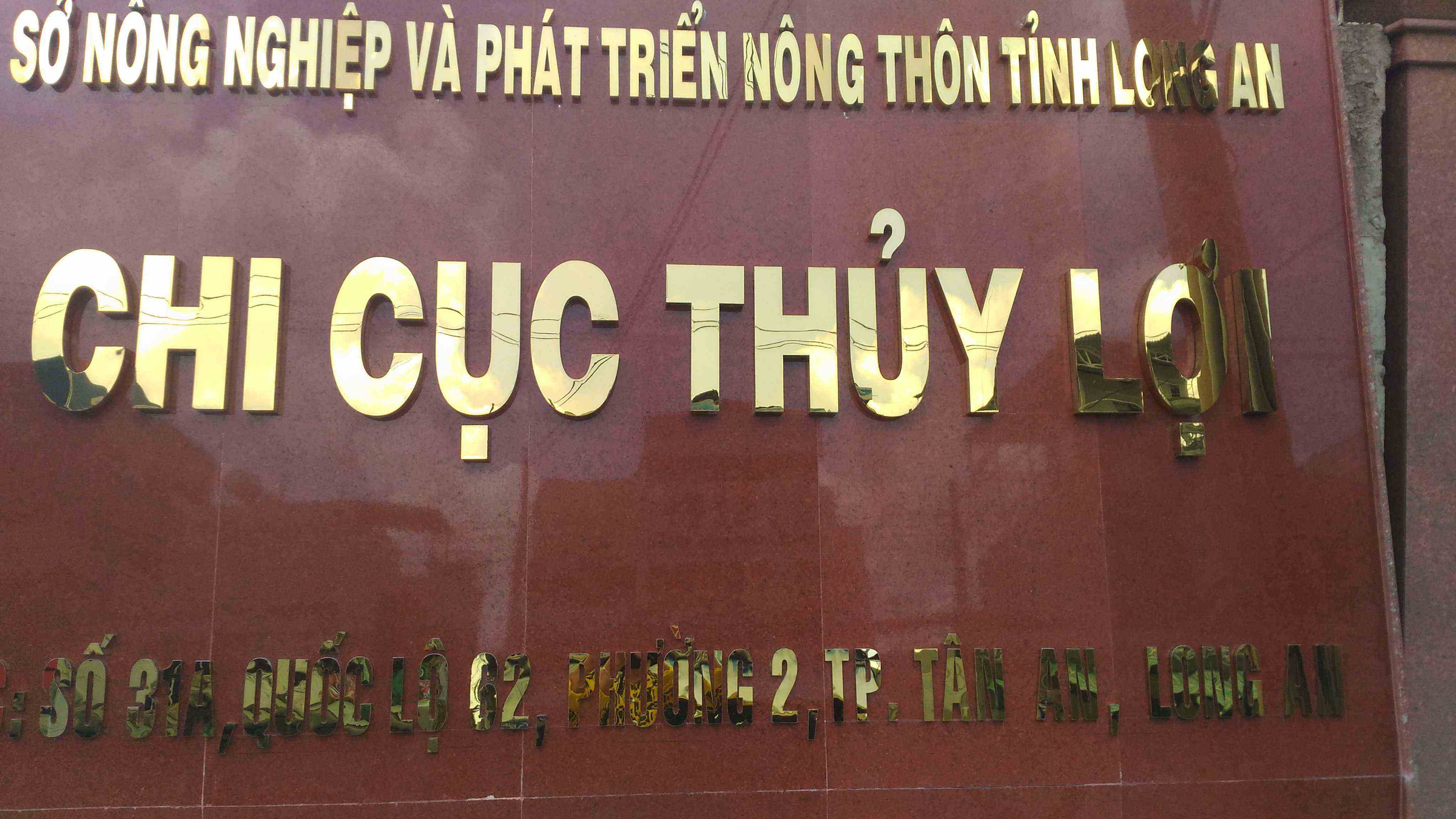 Bảng hiệu chữ inox vàng cho Chi cục Phát triển Nông thôn trong tỉnh Long An